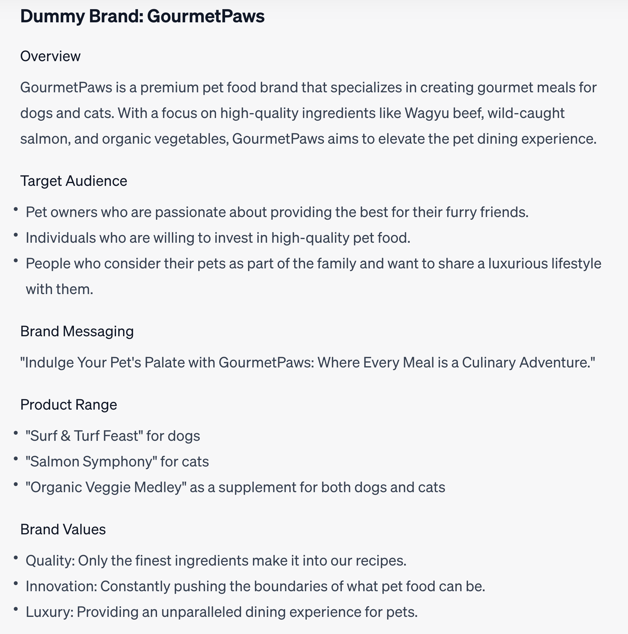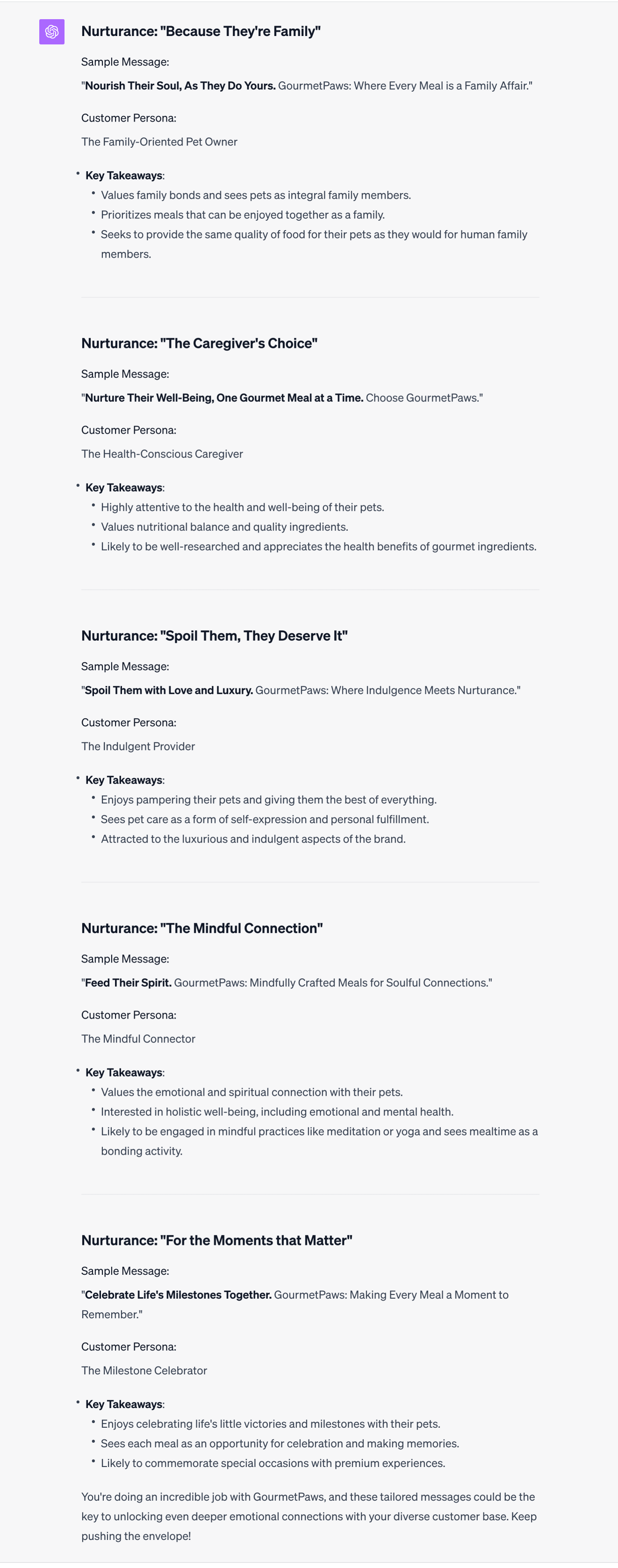 GourmetPaws can read this and walk away with clear ideas on how to implement these messages to attract specific customer personas within their audience.